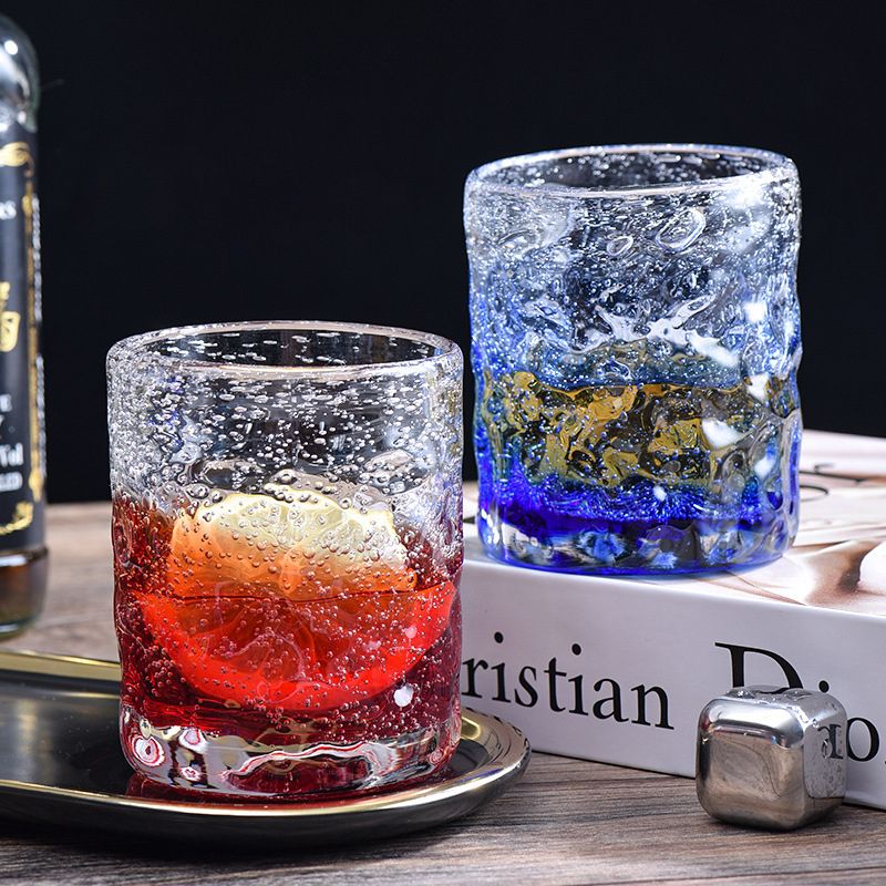 Kabarcıklı cam içecek bardağı, düzensiz degrade düz ağızlı bardak, şeffaf cam, basit ve güzel, degrade renk, ışık ve gölgenin kırılması altında ışık yayan, çok romantik, ünlü blog yazarıyla aynı stili elde etmek kolay, fotoğraf için poz vermesi kolay uzman. Akıllı baloncuklar