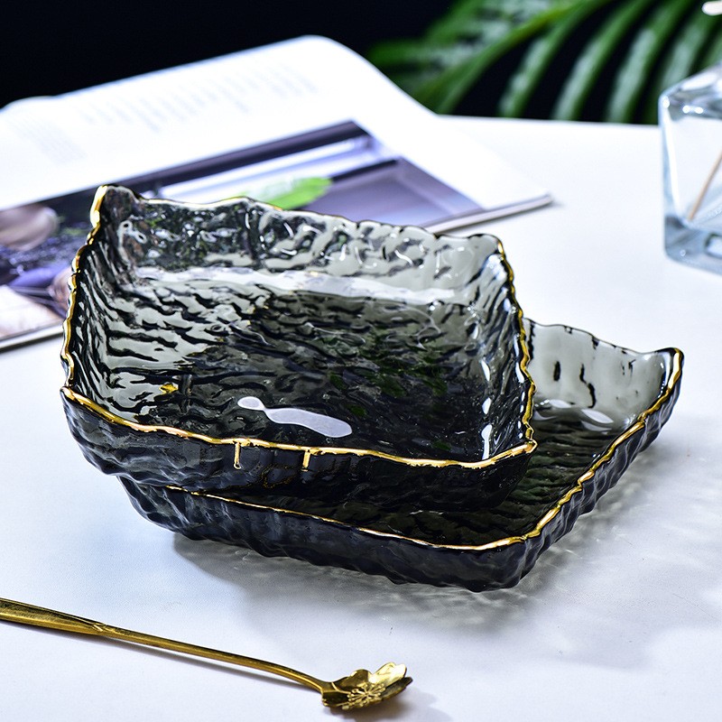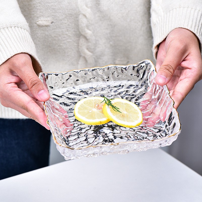 Ürün adı: Altın kenarlı dövülmüş kare cam meyve kasesi