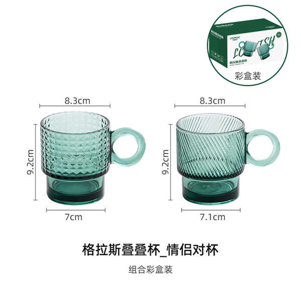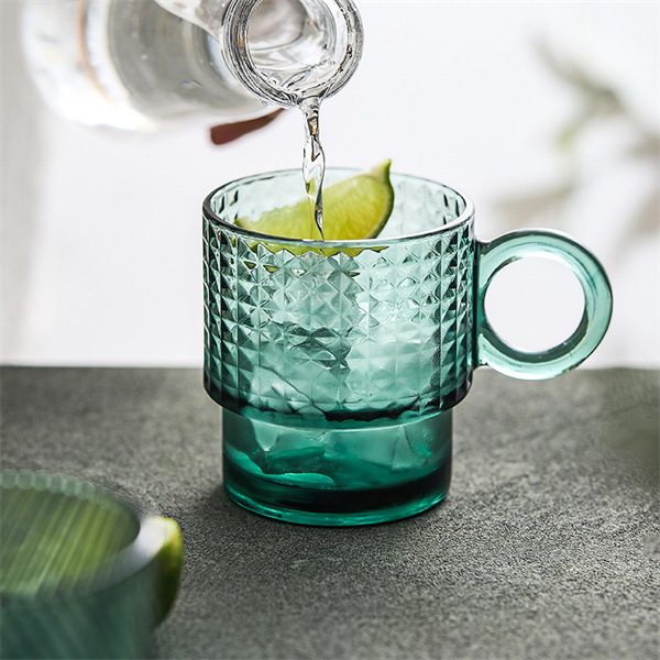 Büyük kapasiteli, hafif, lüks cam su bardağı, güneşte parıldayan, güzel ve çekici. Bahar yeşili ormanda yürümek, hafif esinti ve çiçek kokularıyla sarhoş olmak gibidir. Taze retro yeşil rengin sade tasarımı ve birden fazla içecek içeren şeffaf cam, yumuşak bir kızın kollarındaki rüzgarı süslüyor. Yaratıcı istifleme tasarımı saklamayı kolaylaştırır, yerden tasarruf sağlar ve aynı zamanda güzel bir ev dekorasyonu olarak da kullanılabilir. Dikey çizgilerin ve kare elmasların dinamik dokusu, cihazın yüzeyinin canlanmasını sağlar ve ışığın şekli ışık altında değişerek baktığınız her şeyin alacakaranlıkta olmasını sağlar. INTOWALK cam ev ürünleri e-ticaret platformu tedarik zinciri