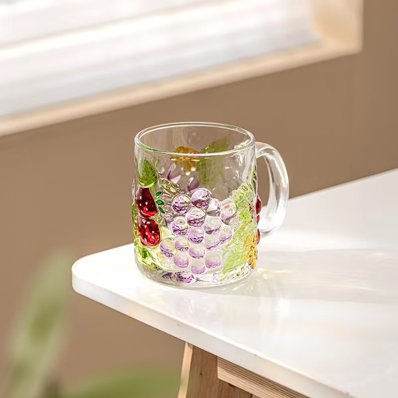 3. Yapay elle boyanmış, renkli, meyve desenleri doğal ve sorunsuz bir şekilde iç içe geçmiş, sanatsal bir cam meyve plakası gibi, daha dokulu bir yaşam estetiğini genişletiyor